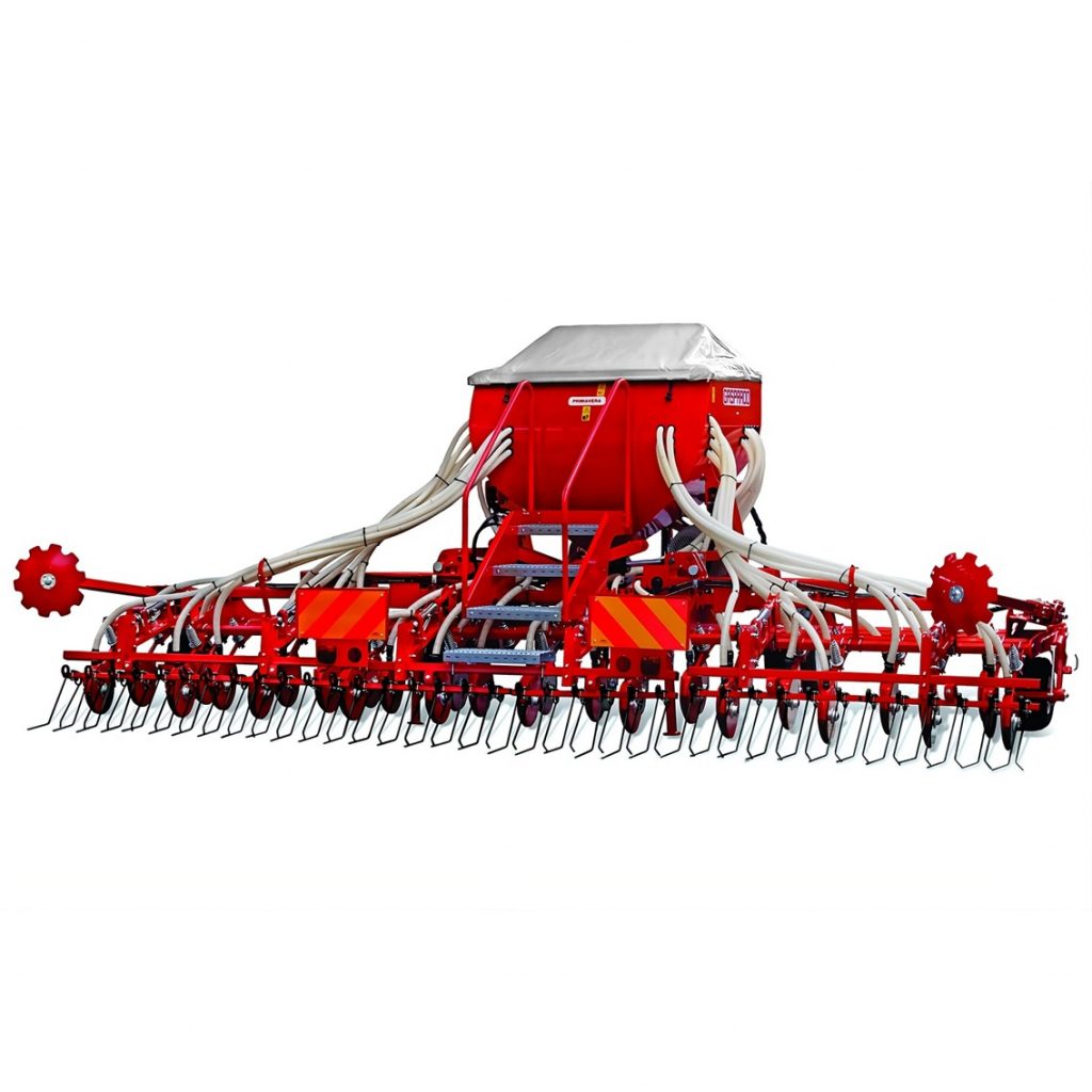 La Seminatrice Maschio Gaspardo Primavera è una seminatrice pneumatica in linea per cereali, apprezzata per affidabilità, robustezza e precisione. È disponibile con telaio portato o trainato, con larghezze di lavoro da 5 a 6 metri e fino a 48 file di semina. Le ali laterali sono a chiusura idraulica, garantendo un ingombro di trasporto di soli 3 metri per agevoli spostamenti.