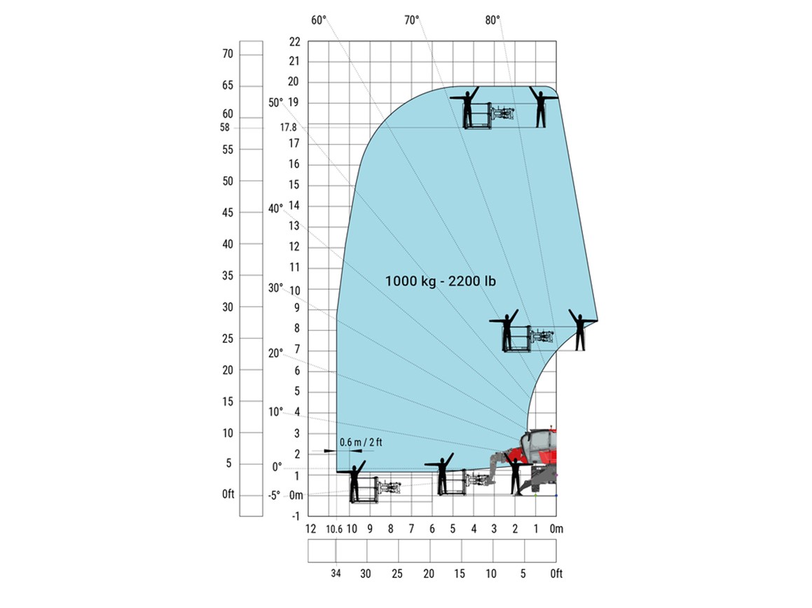 Questa caratteristica, unita alla rotazione della torretta, consente di operare in un’area di lavoro modulare senza la necessità di spostare la macchina, migliorando efficienza e tempi di lavoro.